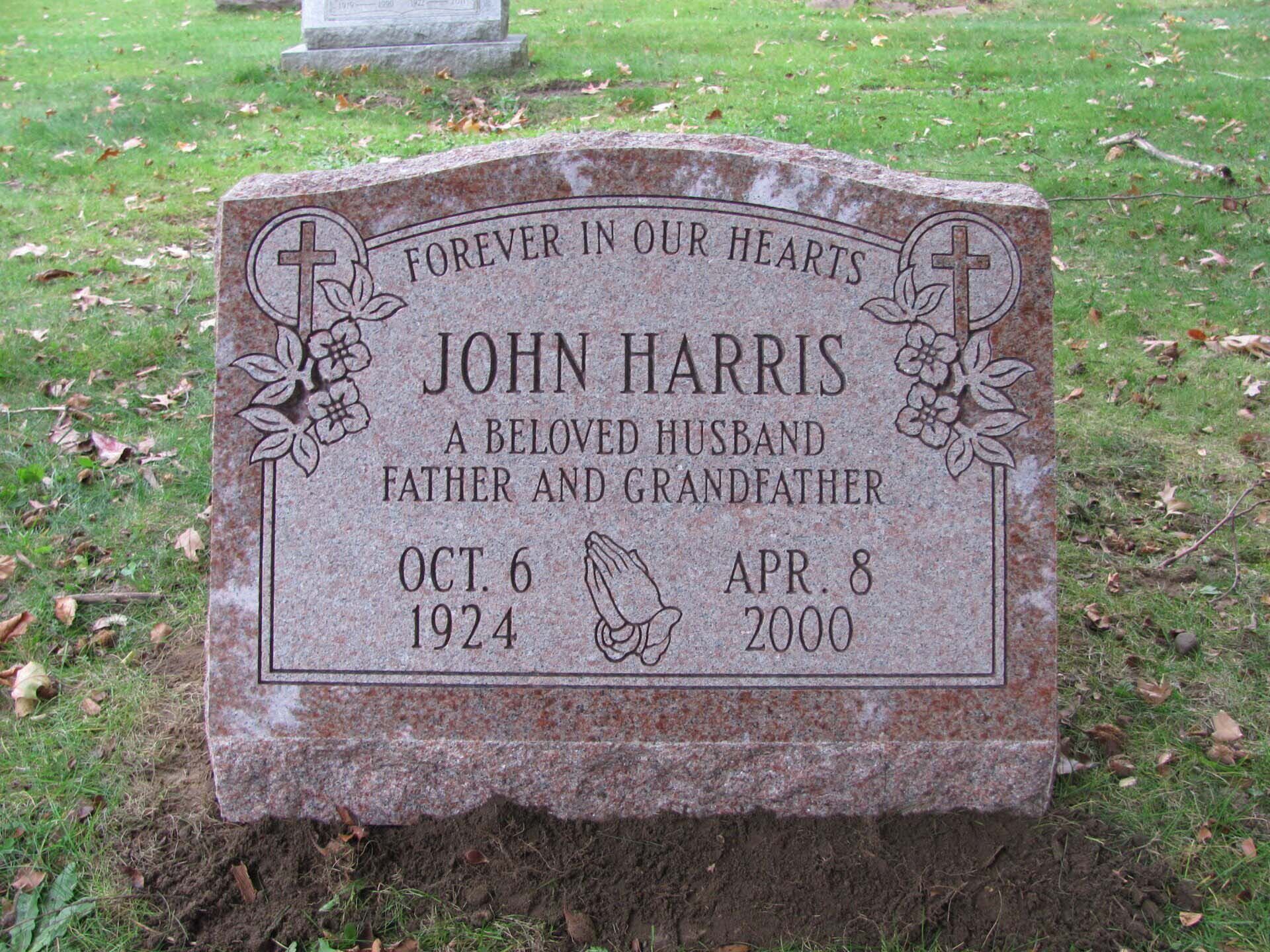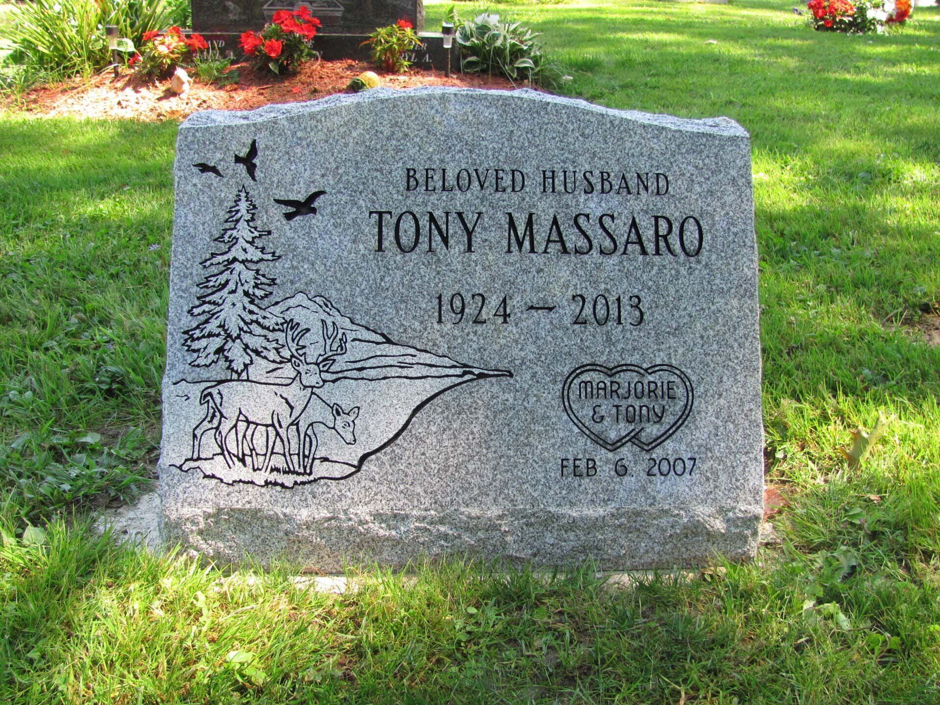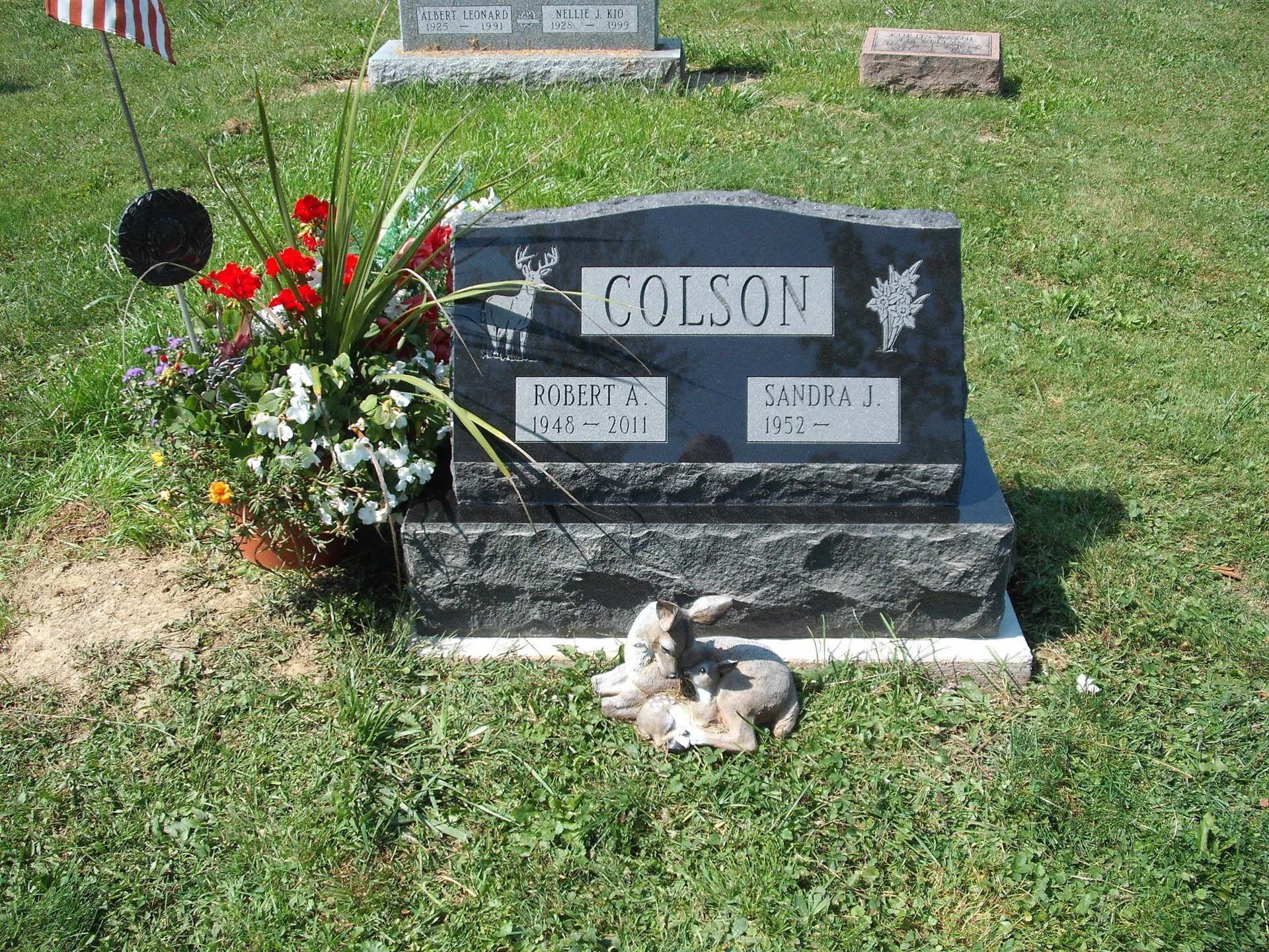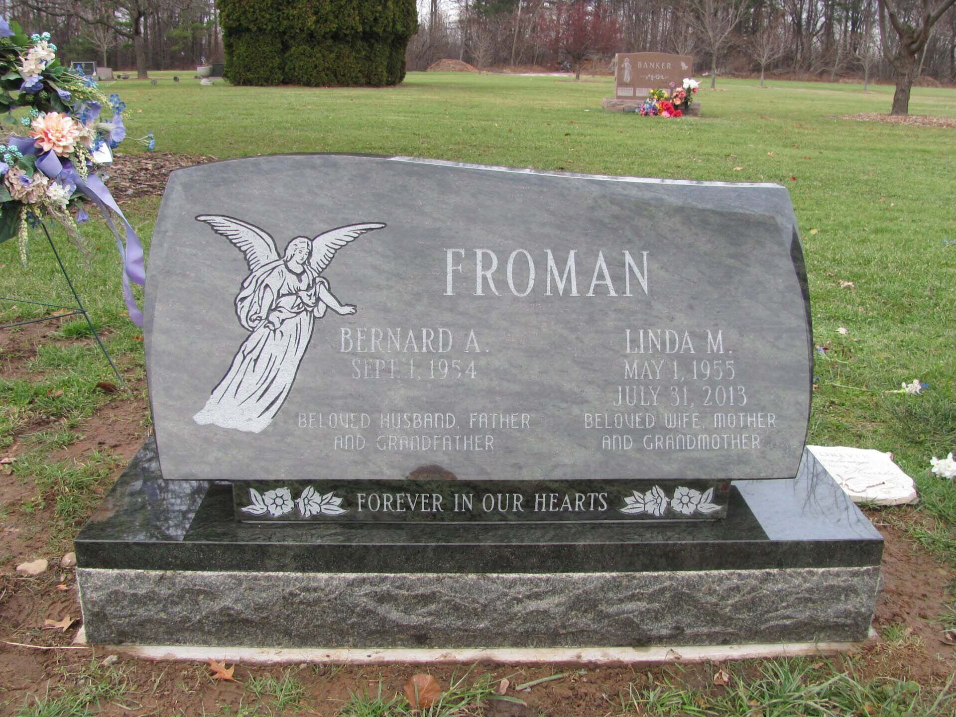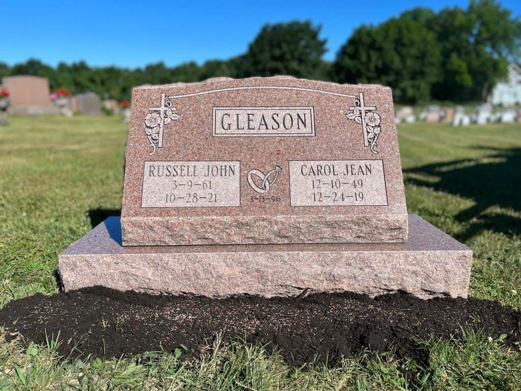A slant marker is short and upright with a slanted face, usually 12-16 inches tall. While not tall enough to be considered an upright monument, a slant grave marker has a wider base that slants toward the back, presenting an upward profile. Because the granite is cut to sit at a steep angle, these markers stand out in a cemetery.