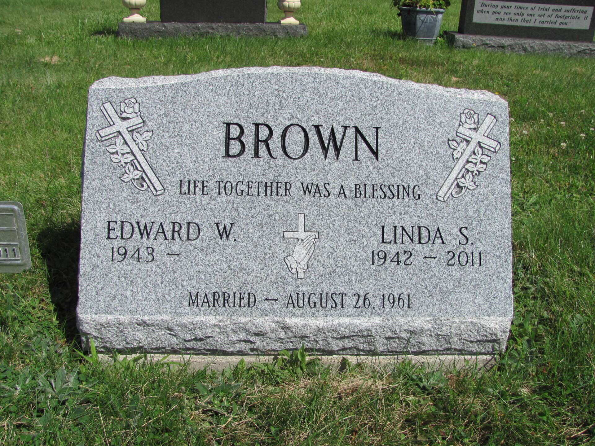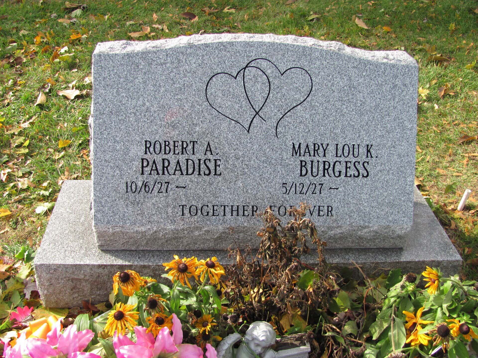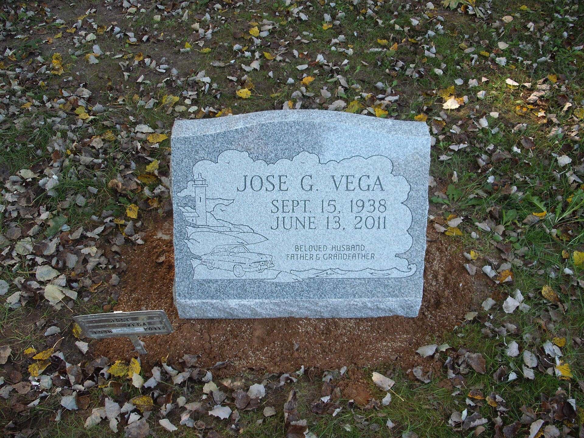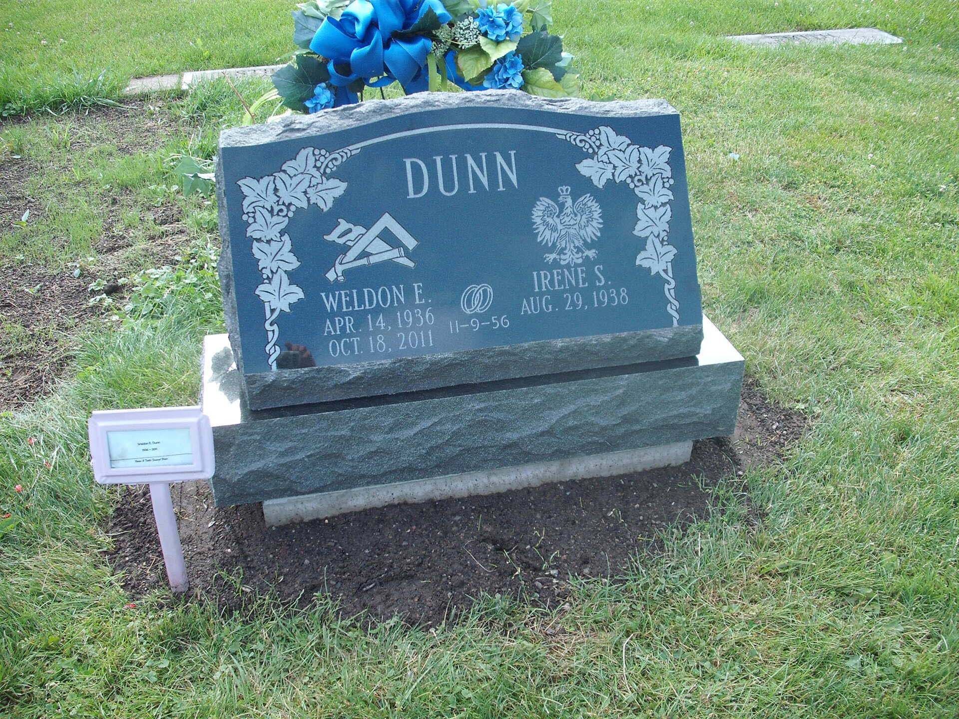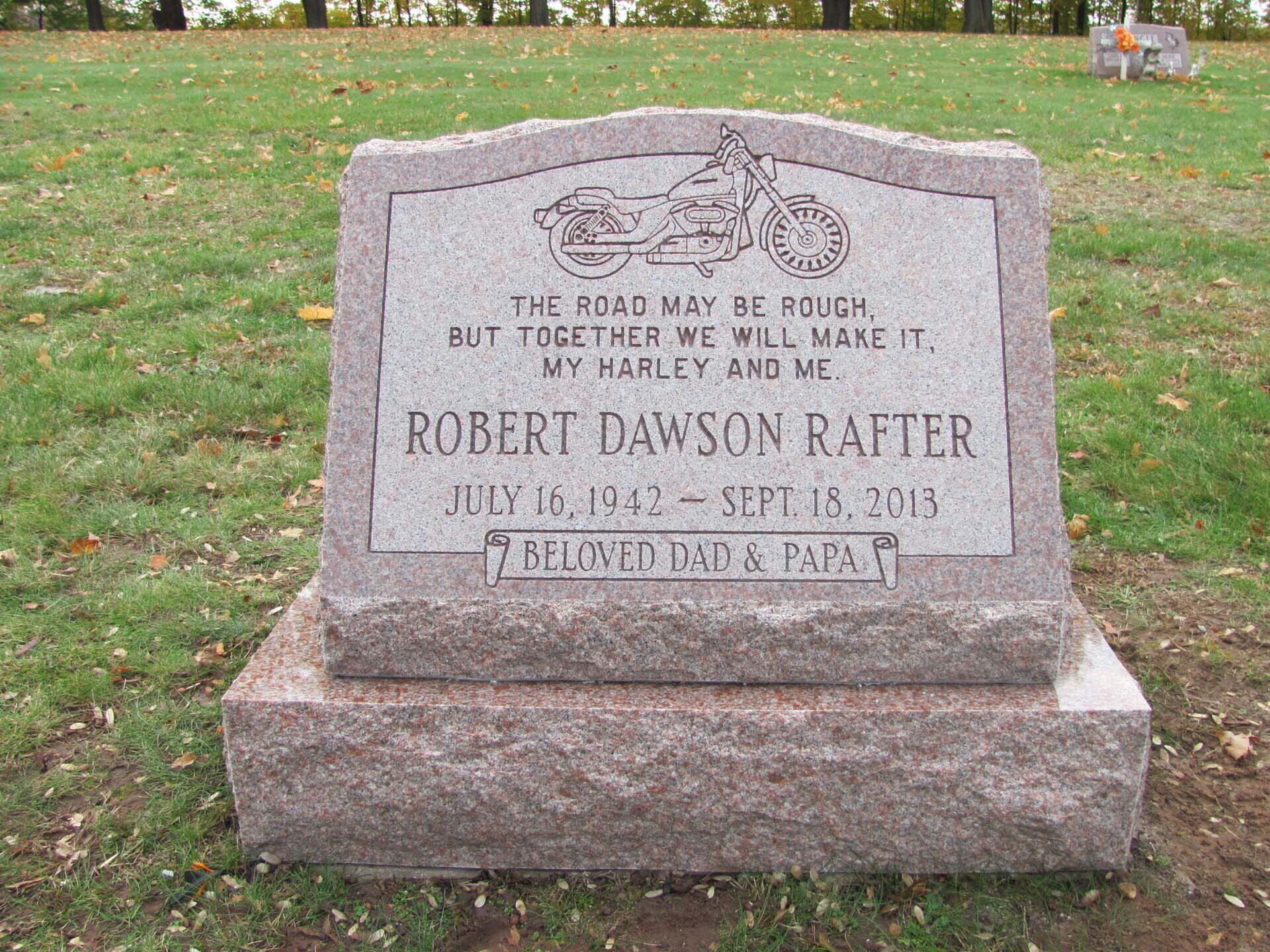 A slant marker is short and upright with a slanted face, usually 12-16 inches tall. While not tall enough to be considered an upright monument, a slant grave marker has a wider base that slants toward the back, presenting an upward profile. Because the granite is cut to sit at a steep angle, these markers stand out in a cemetery.